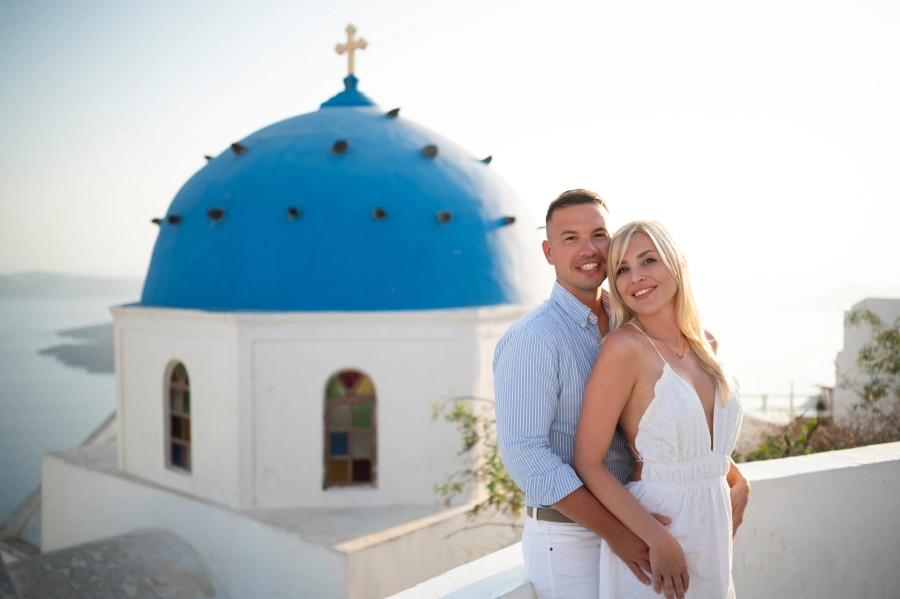 Pont egy évvel később, az évforduló napján Santorini napsütötte szigetén, a fehér házak és a végtelen kék tenger között Levi feltette azt a kérdést, ami örökre megváltoztatta a történetünket. Zsófi pedig igent mondott — nemcsak egy kérdésre, hanem egy közös életre, kalandokra és mindenre, ami még előttünk áll. Most pedig itt tartunk, készen arra, hogy a történetünk következő fejezetét már férjként és feleségként írjuk tovább, ugyanazzal a kíváncsisággal, humorral és szeretettel, amivel minden elkezdődött — együtt.